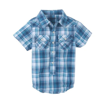 Baby Boy Wrangler Short Sleeve Western Snap Onesie - MIXED BLUE PLAID