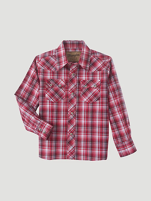 Boy's Wrangler Retro Long Sleeve Western Snap Shirt - RED PLAID
