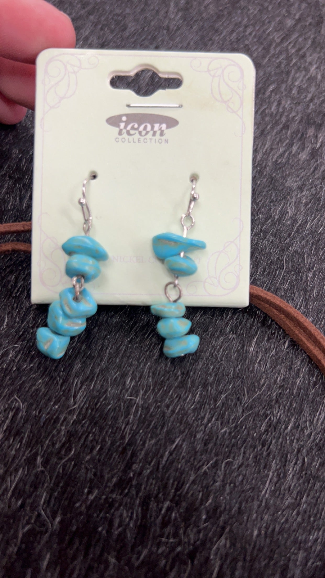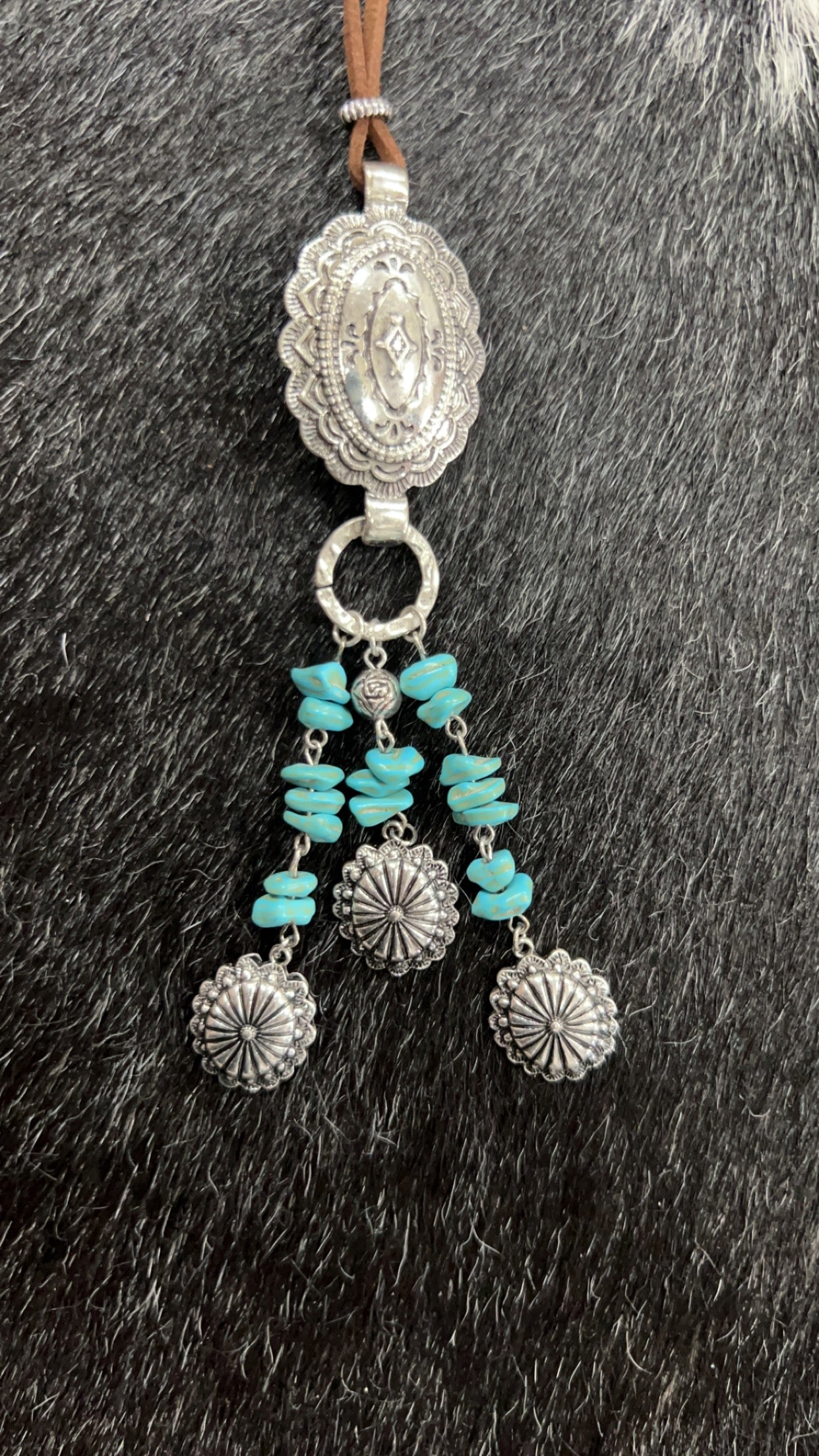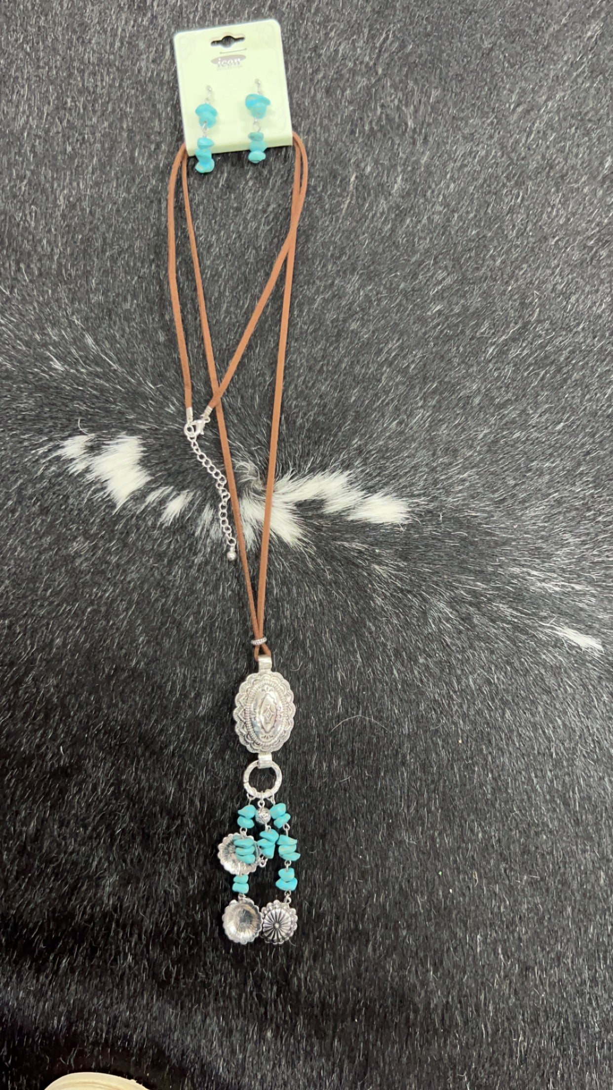 TURQUOISE SAN ANTONIO FALLS CONCHO CORD NECKLACE AND EARRING SET
