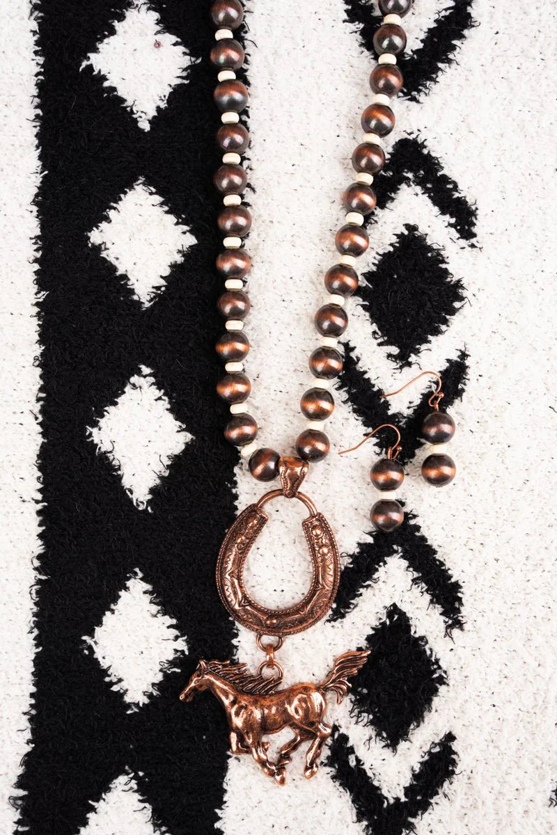 HOWLITE HORSESHOE RUN COPPER PEARL NECKLACE AND EARRING SET