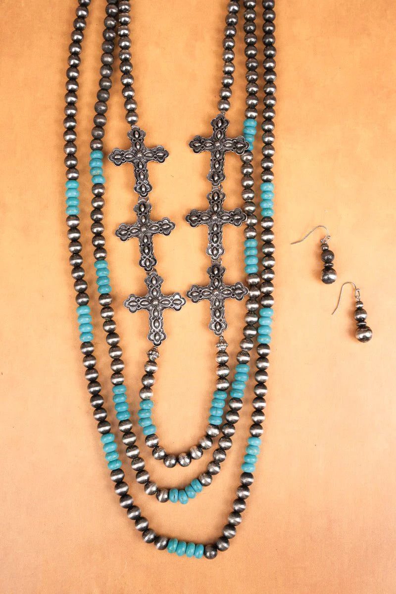 CROSS MOUNTAIN TURQUOISE & SILVER PEARL NECKLACE AND EARRING SET