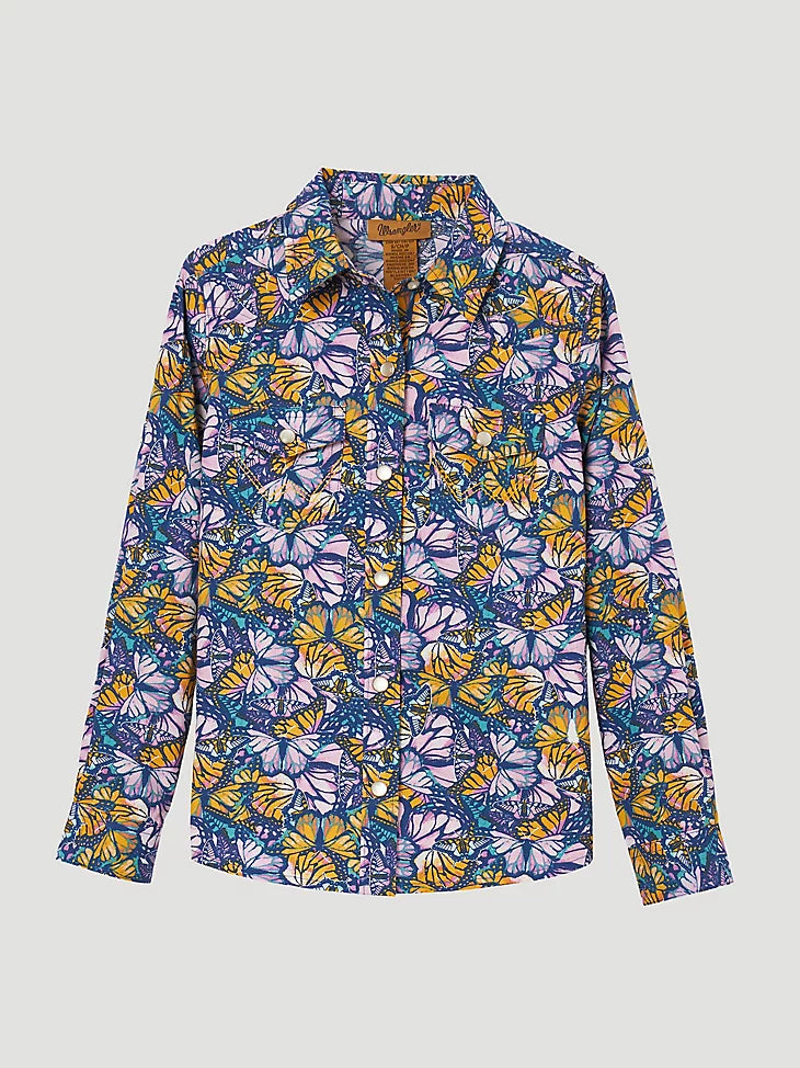 Girls Western Snap Shirt- Purple Multi Butterfly