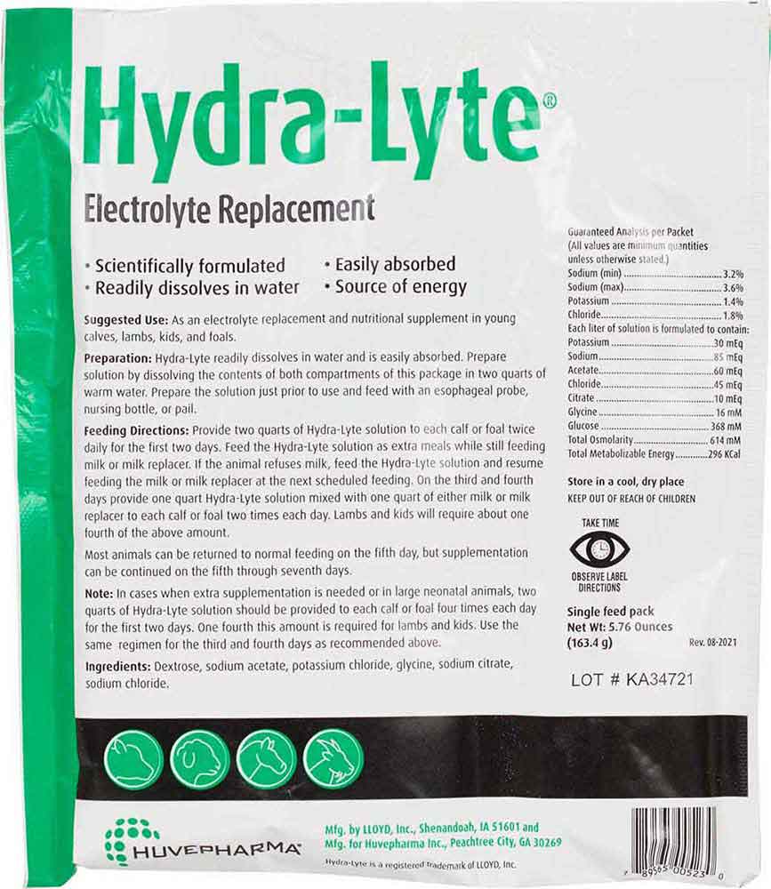 An energy-rich electrolyte replacement and nutritional supplement for young calves, lambs and foals. Restores normal body fluid and electrolyte balance to help reverse loss of body weight. Contains: potassium, sodium acetate, sodium chloride, sodium citrate, dextrose, glycine and glucose. Give 2 quarts solution to calves and foals twice daily for the first two days, then on days 3 and 4, mix 1 qt. solution with 1 qt. milk or milk replacer. Lambs require about 1/4 of the above dosage.