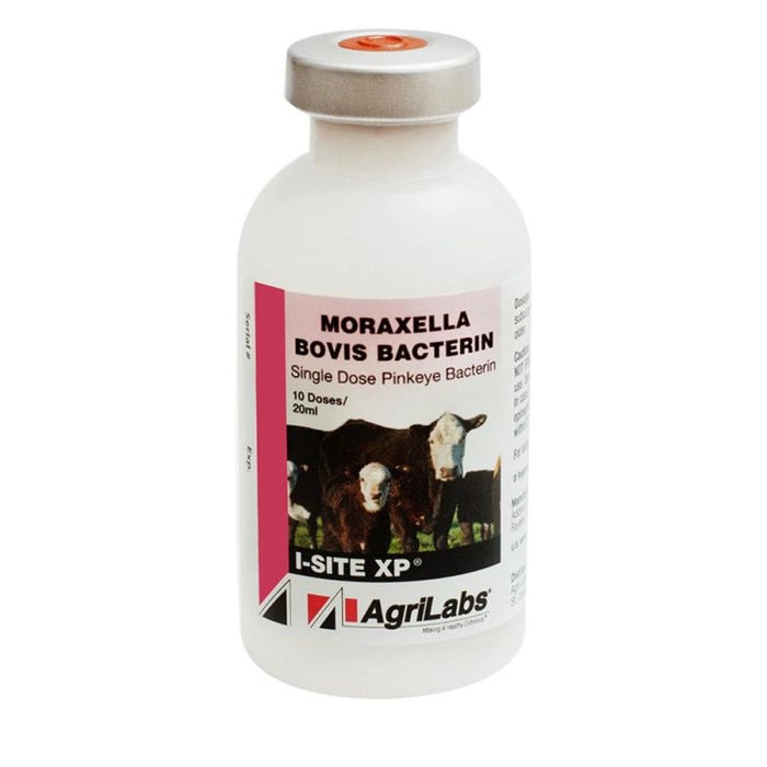 I-Site XP vaccine is used to control and prevent pinkeye in healthy cattle (infectious bovine keratoconjunctivitis) caused by Moraxella bovis. Low-volume, 2-ml dose can be given to calves 2 months of age and older. Offers broad protection against eight Moraxella bovis strains, so you can protect your herd before fly-season starts. Single dose for prevention and control of pinkeye caused by Moraxella Bovis in cattle 2 months of age or older. Contains 8 Moraxella Bovis isolates for broad protection. Give 2 ml SQ prior to the onset of pinkeye season. Annual booster is recommended. Pinkeye Protection - It's not just pinkeye. It's your profitability. You can stop pinkeye before it starts with a single dose of I-SITE XP for broad protection before fly-season begins.