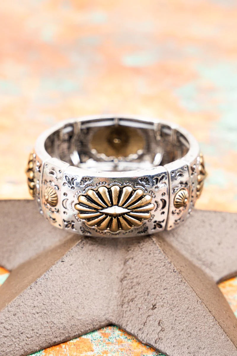 LA MIRADA BURNISHED SILVERTONE AND GOLDTONE STRETCH BRACELET