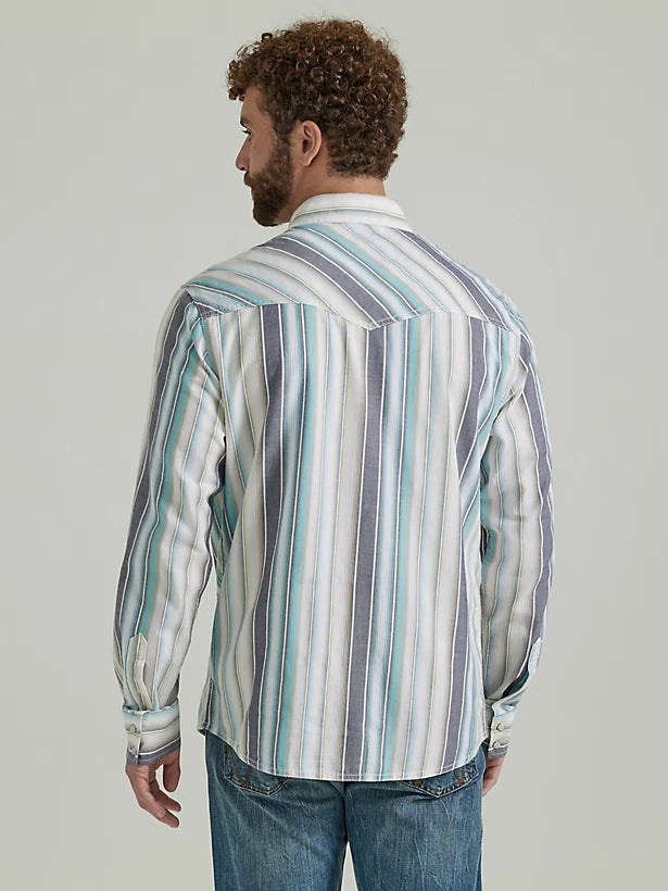 MEN'S WRANGLER RETRO PREMIUM WESTERN SNAP PRINT SHIRT IN SEAFOAM STRIPE