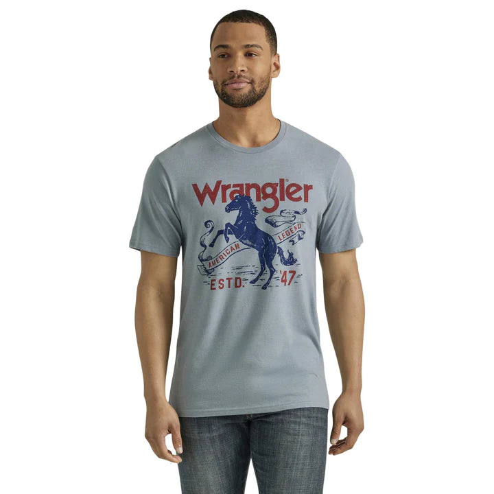 Unleash your style any time of year with the Year-Round T-Shirt in Tradewinds (slate Gray) Heather by Wrangler! This trendy short sleeve shirt is designed with a regular fit for maximum comfort. Made with a blend of 50% cotton and 50% polyester, this shirt is a perfect balance of style and practicality!