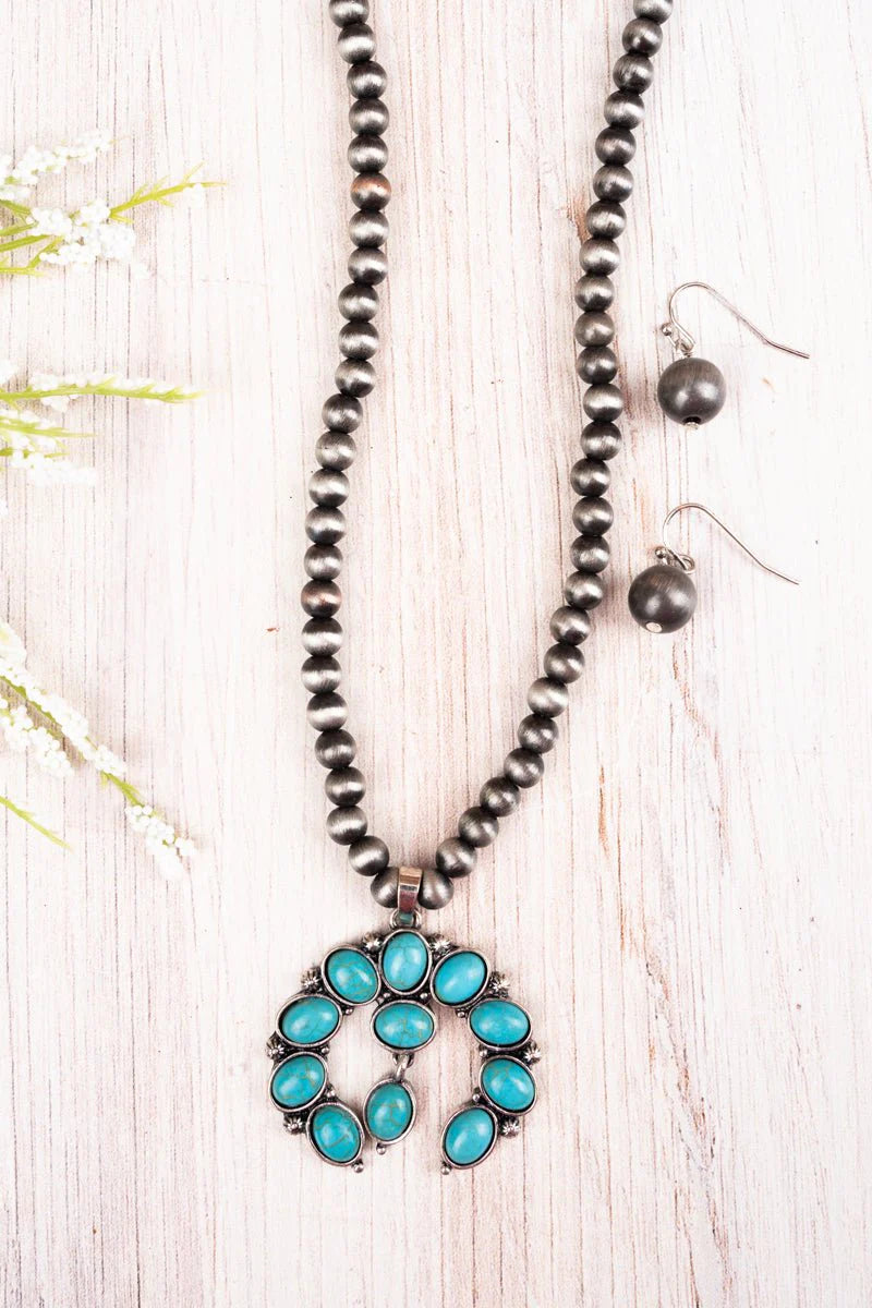 TURQUOISE NAJA SILVER NAVAJO INSPIRED PEARL NECKLACE AND EARRING SET