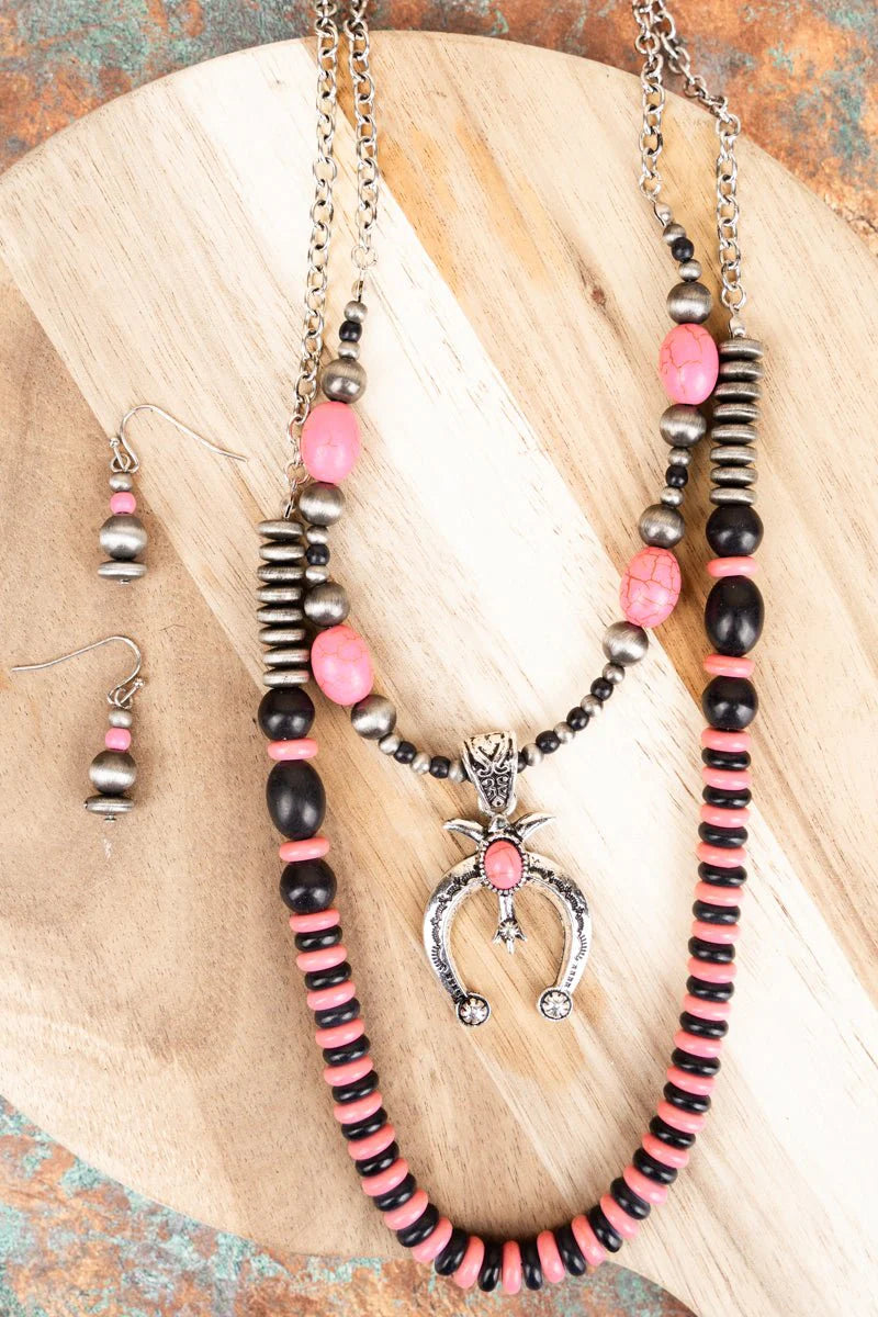 EMPORIA PINK NAJA LAYERED NECKLACE AND EARRINGS SET