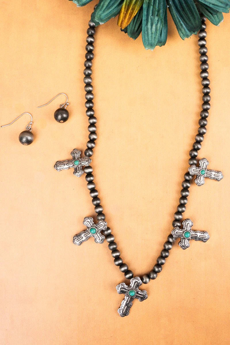 SILVER RIVER TURQUOISE NAJA NECKLACE AND EARRING SET