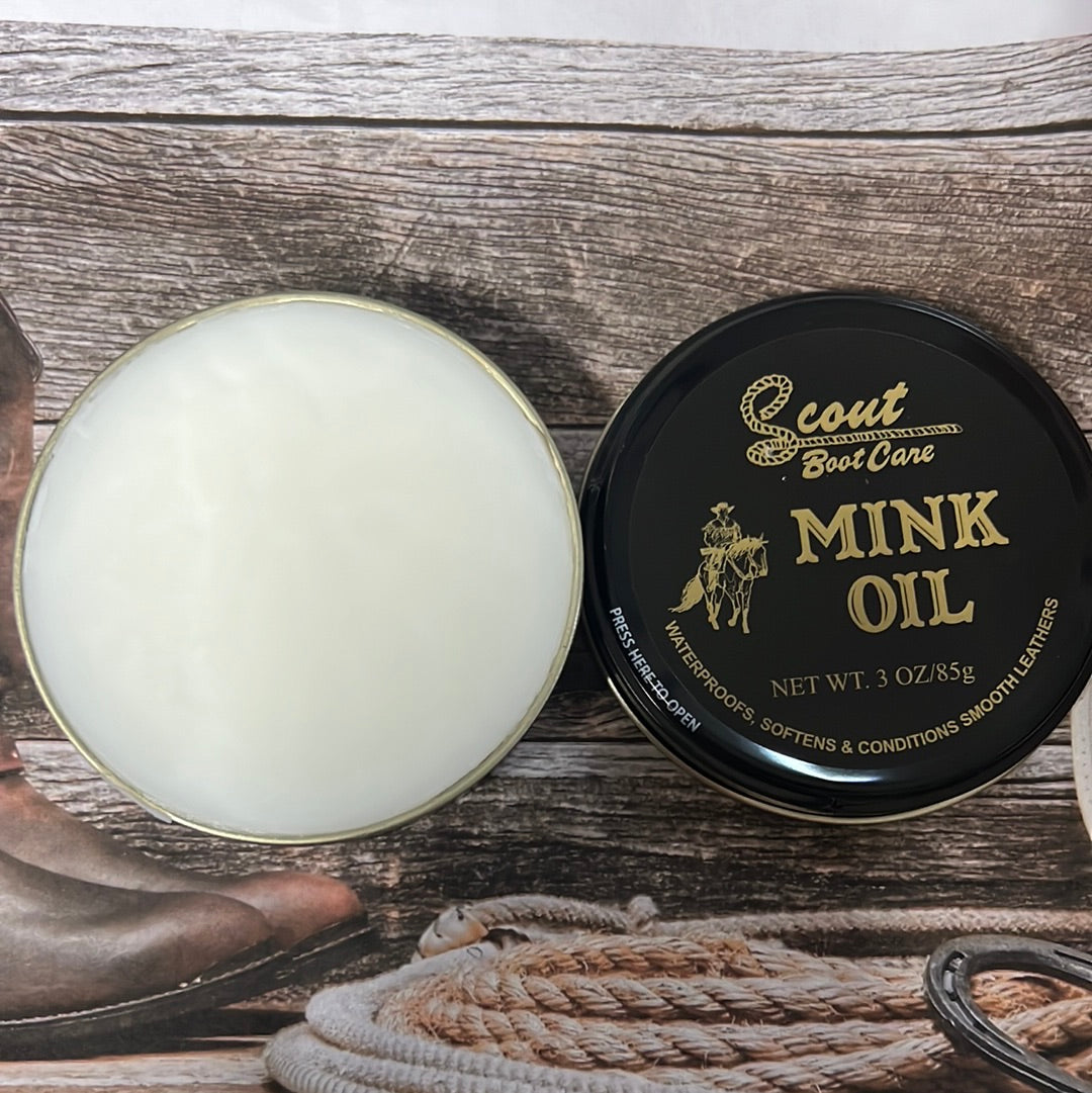 Every pair of boots needs a drink every once in a while! Leather needs to stay hydrated to maintain its flexibility and quality. Everyday elements are working to drain the moisture from our boots. This mink oil supplies the much needed “drink” that your boots are asking for. It also serves to waterproof, soften, and condition the leather.