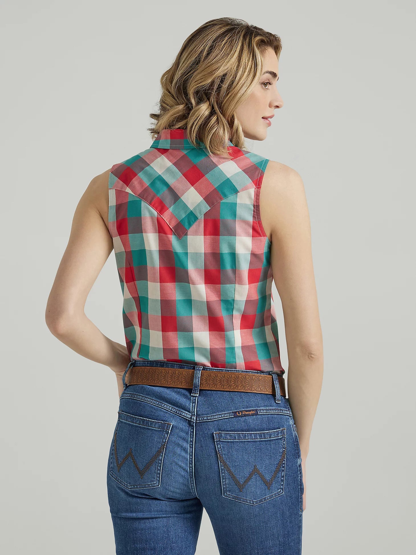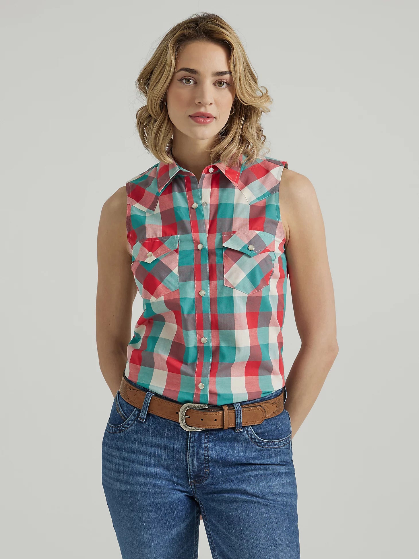 Women's Essential Western Snap Tank in Turquoise Red