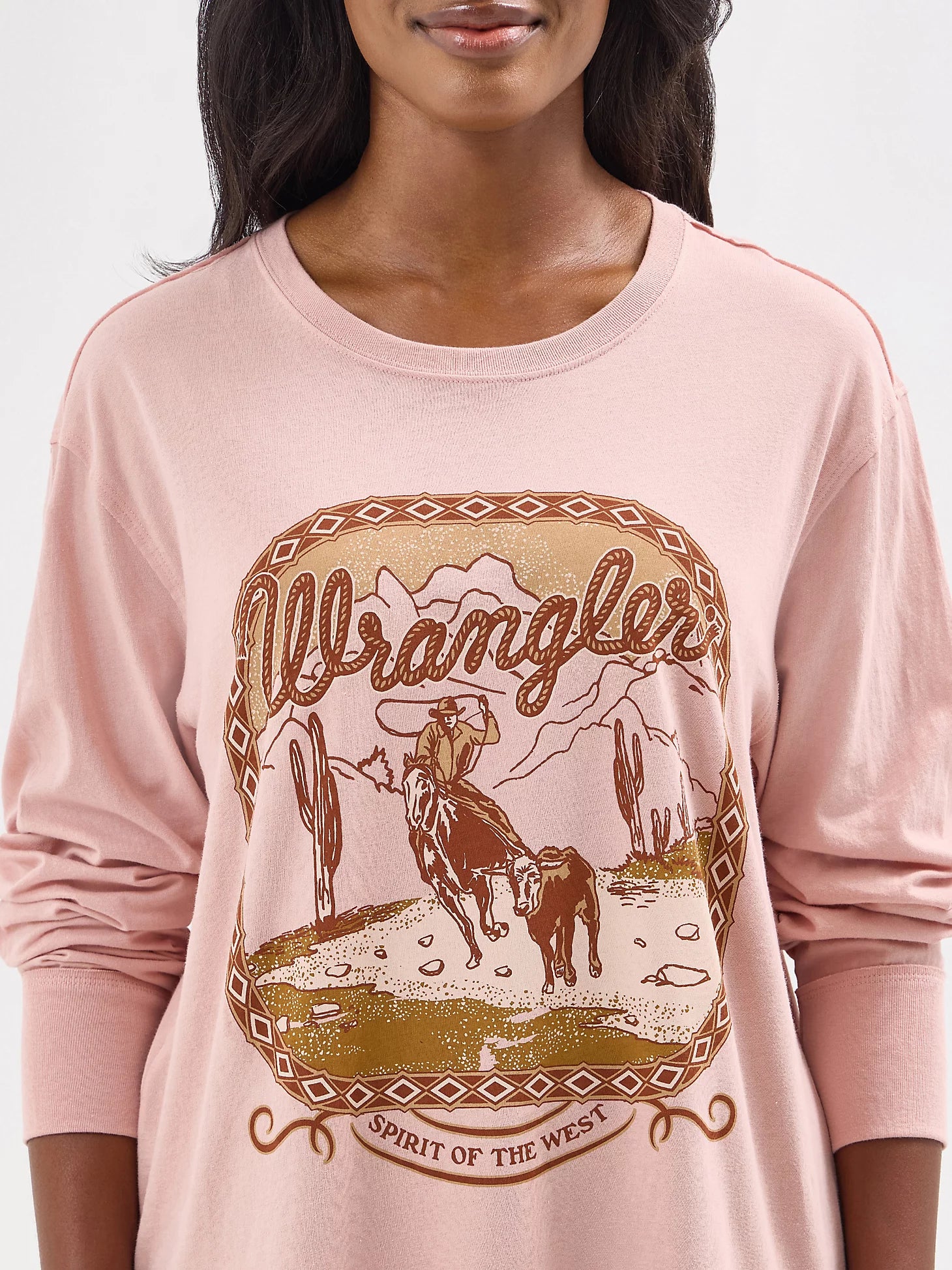 Women's Wrangler Graphic Long Sleeve Relaxed Tee in Misty Rose