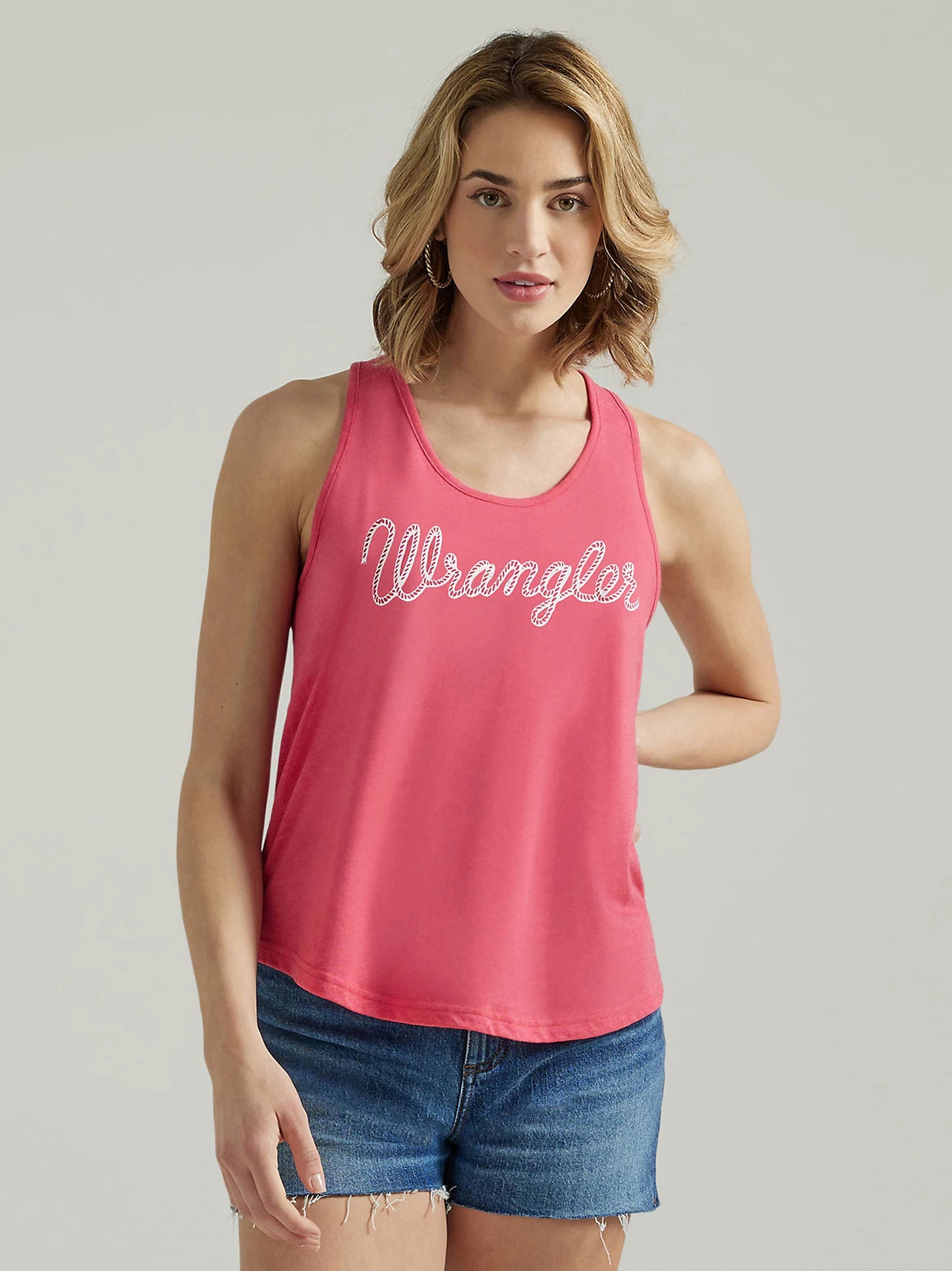 You can't go wrong with the look of a classic logo. Luckily, our women's Wrangler Retro® rope logo racerback tank keeps it simple in an authentic way. It's crafted from a comfy cotton blend you can easily wear all year long, especially layered under a denim jacket when weather cools down. Across the chest, the Wrangler® rope logo grounds this tank in the Western look you know and love. Complete your outfit with a pair of shorts or jeans.