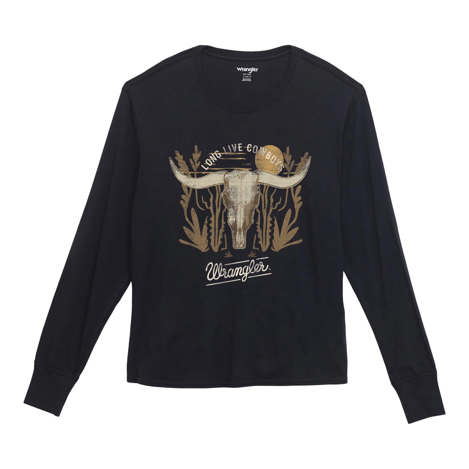 Women's Wrangler Steer Skull TShirt- Long Sleeve- Dark Navy