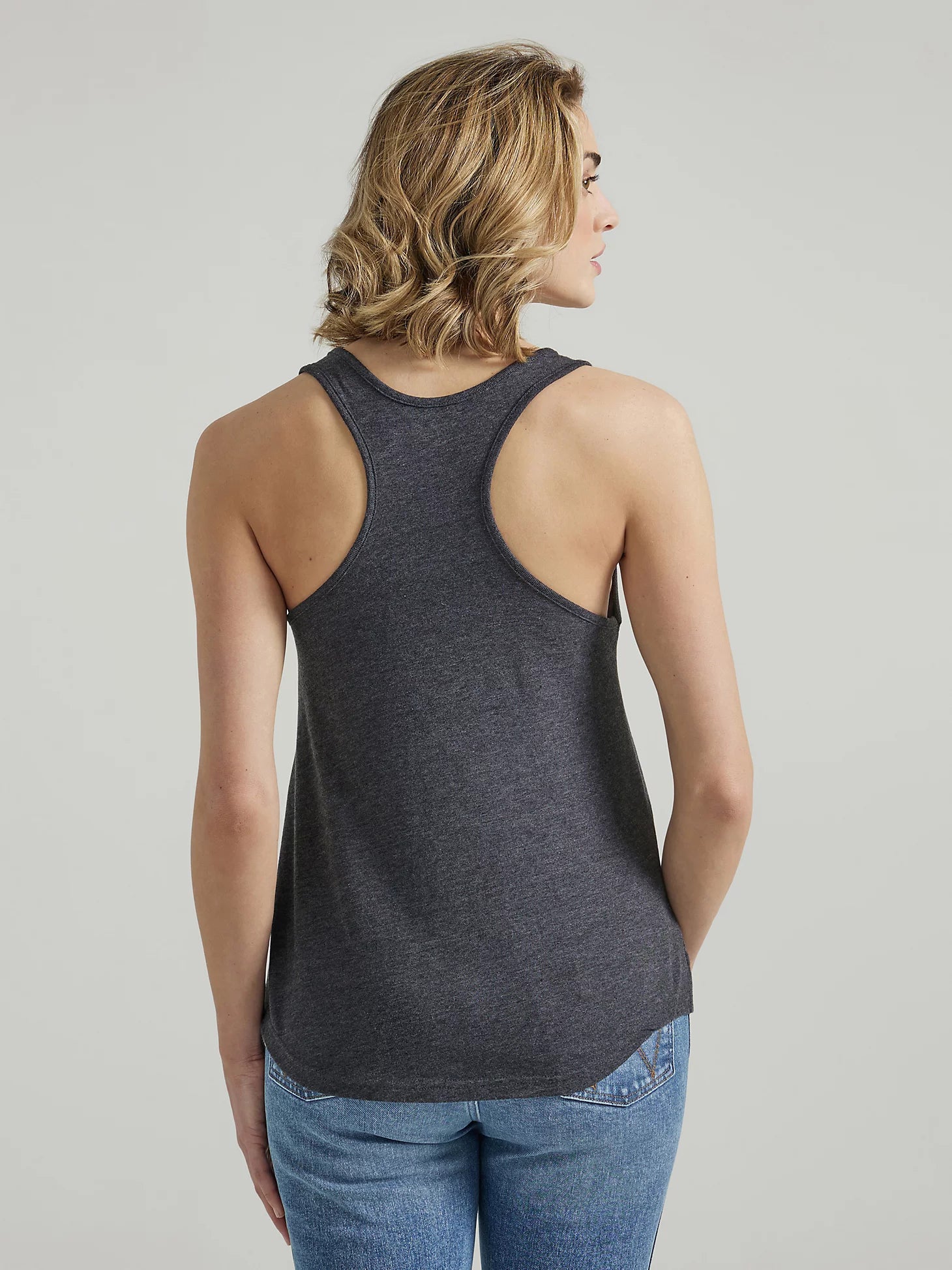 WOMEN'S WRANGLER SWOOPING EAGLE RACERBACK TANK IN CAVIAR HEATHER
