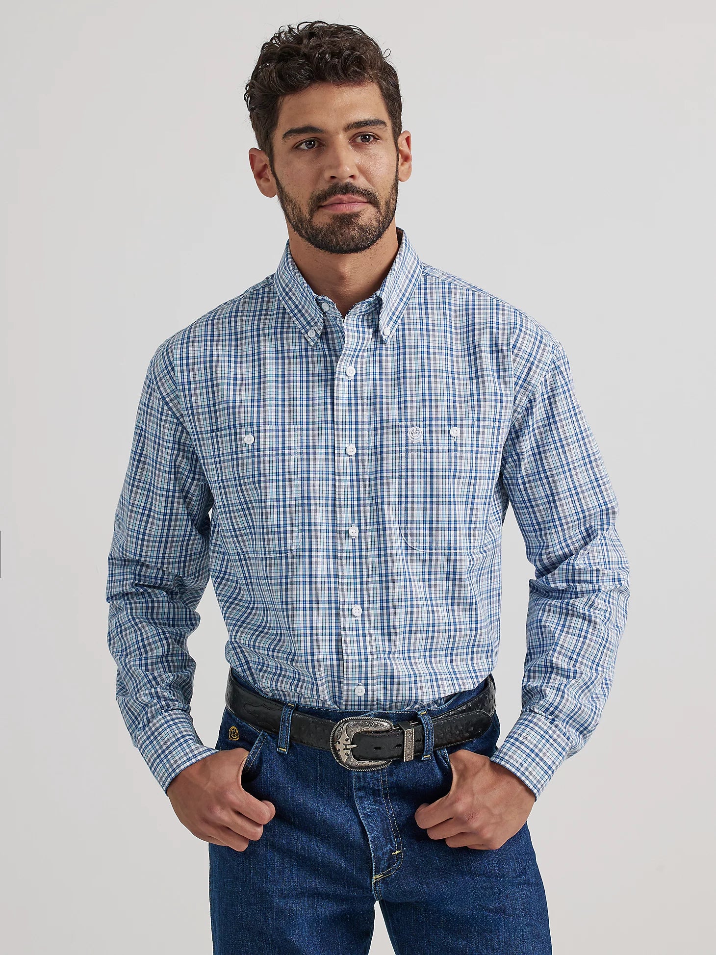 Wrangler® George Strait Collection Two Pocket Long Sleeve Shirt - Blue