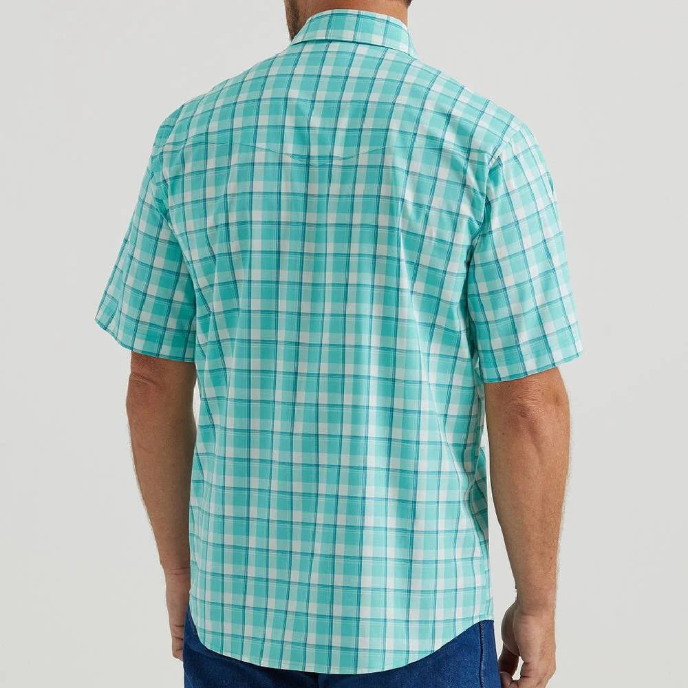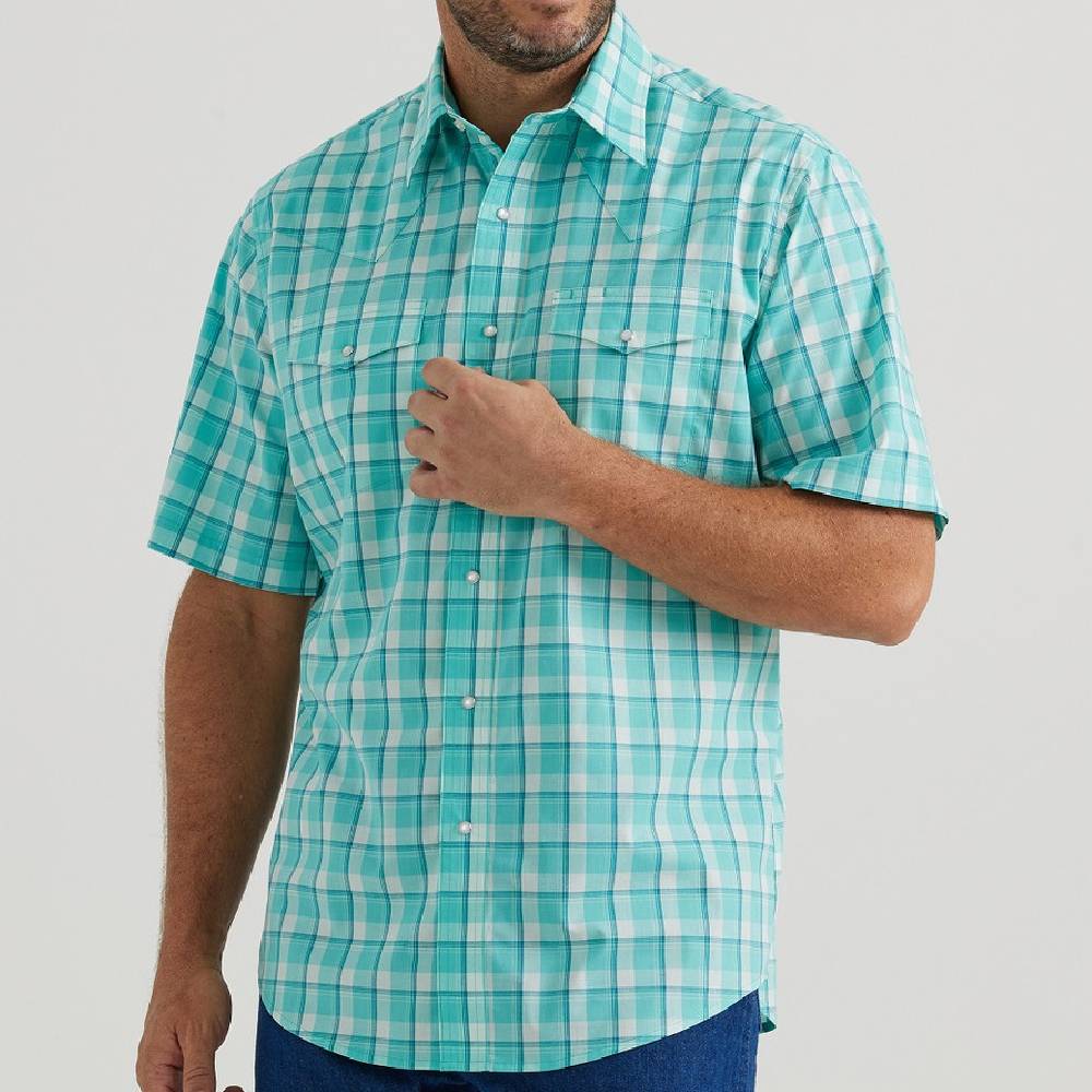 Wrangler Mens Wrinkle Resistant Short Sleeve - Aqua Plaid