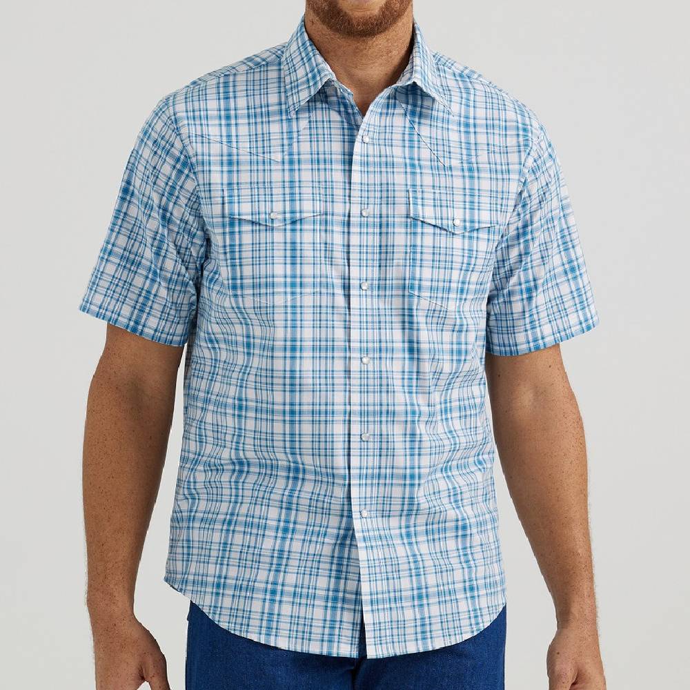 Wrangler Mens Wrinkle Resistant Short Sleeve - Blue/White Plaid