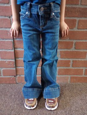 From our collection of styles for children, the Wrangler® girls' trouser features plenty of style in an everyday staple made to keep her comfortable all day long. The adjust-to-fit waistband (in sizes 4-6X) is designed to suit her needs by helping her get her perfect fit, even as she grows. Hip pocket embroidery, classic five-pocket styling, and a trouser leg opening that's slightly wider than a bootcut offer an authentic style she'll want to wear every day of the week. Whether she's getting ready for a full day of play or heading out to school, these girls' jeans are perfect for whatever adventure the day has in store.