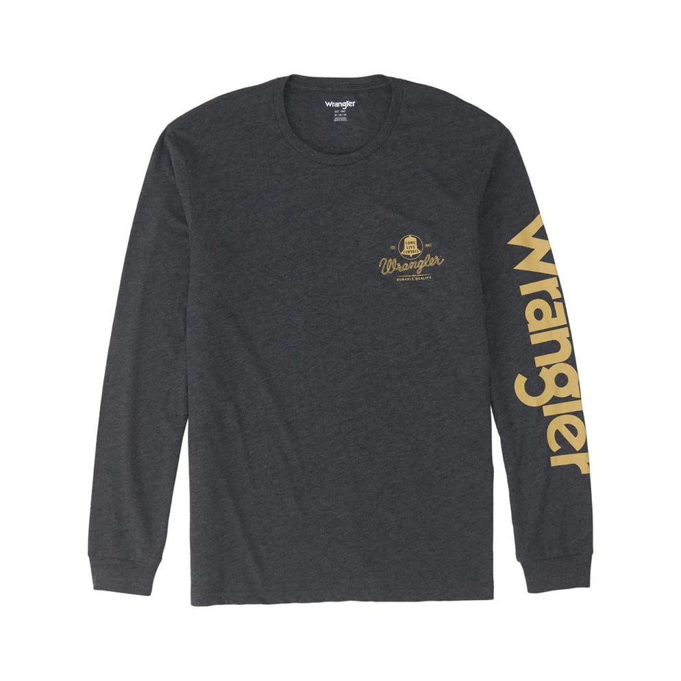 The Wrangler Men's Graphic Long Sleeve Tee in Washed Black is the perfect blend of style and comfort. Crafted from a soft and durable 100% cotton, this long-sleeve tee offers a regular fit that provides all-day ease and versatility. The standout feature of this shirt is its front and back graphic, which adds a touch of rugged charm and makes a bold statement. Ideal for casual outings or relaxed weekends, the Logo Tee combines classic design with modern appeal, making it a must-have addition to any wardrobe.