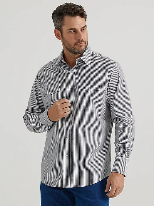 Wrangler Wrinkle Resist Lng Sleeve Snap Shirt- Mens - Black/White Stripe